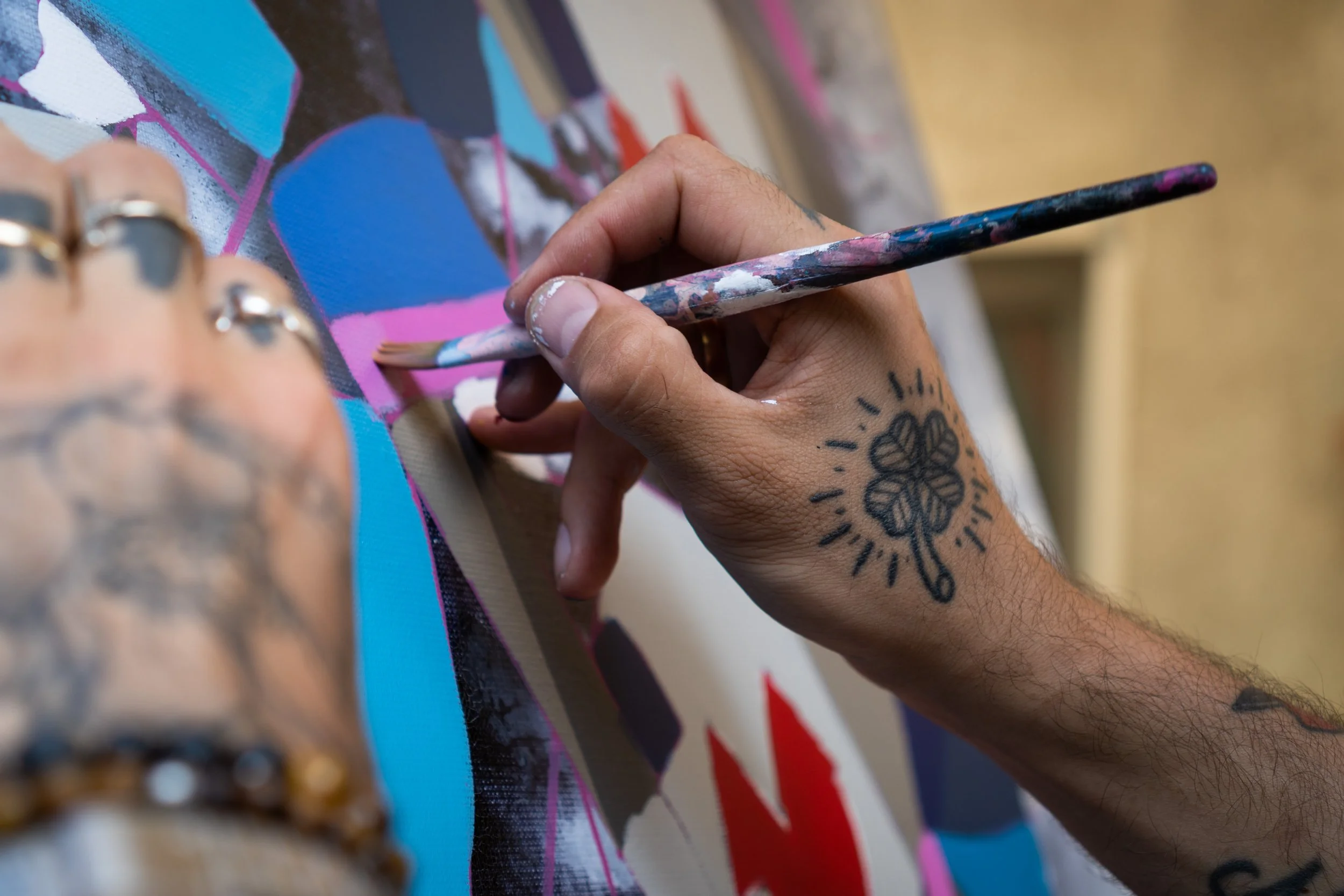 Après un premier échange, je prépare un croquis afin de poser les bases de l’œuvre. Une fois ce croquis validé, je réalise la peinture sur toile.